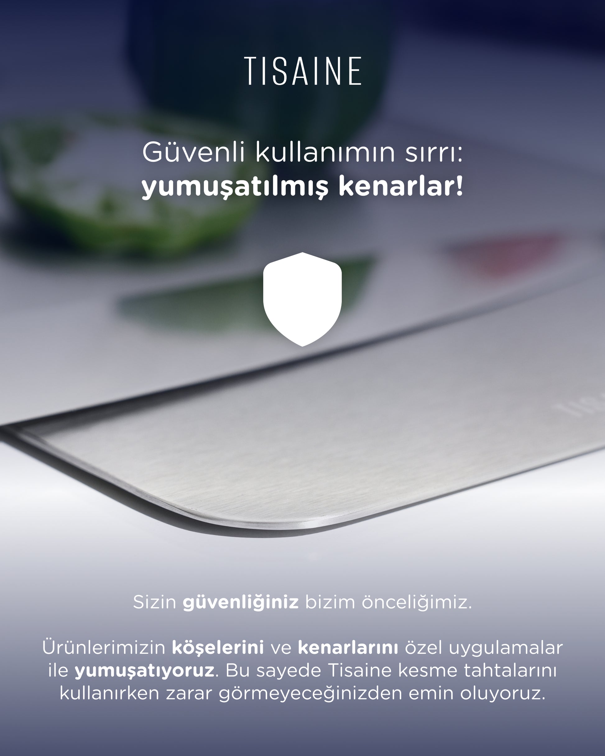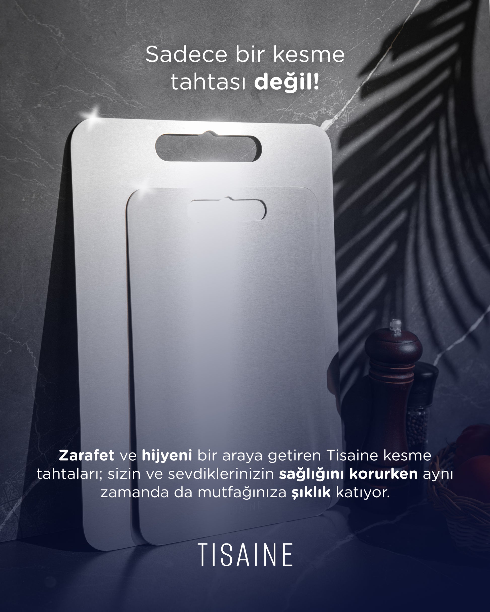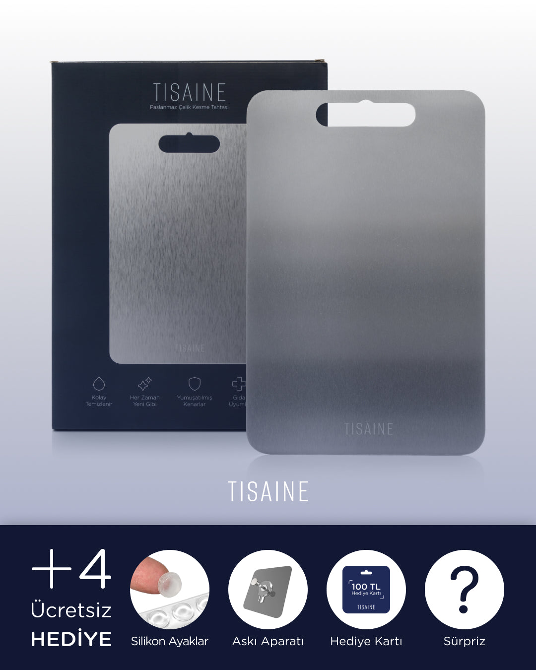 TISAINE paslanmaz çelik kesme tahtası, mutfağınız için sadece bir araç değil, daha güvenli, temiz ve pratik bir yaşam tarzının anahtarıdır. Dayanıklı yapısı, koku ve leke tutmayan yüzeyi ve bıçak dostu tasarımıyla yemek hazırlıklarınızı daha keyifli hale getirir.