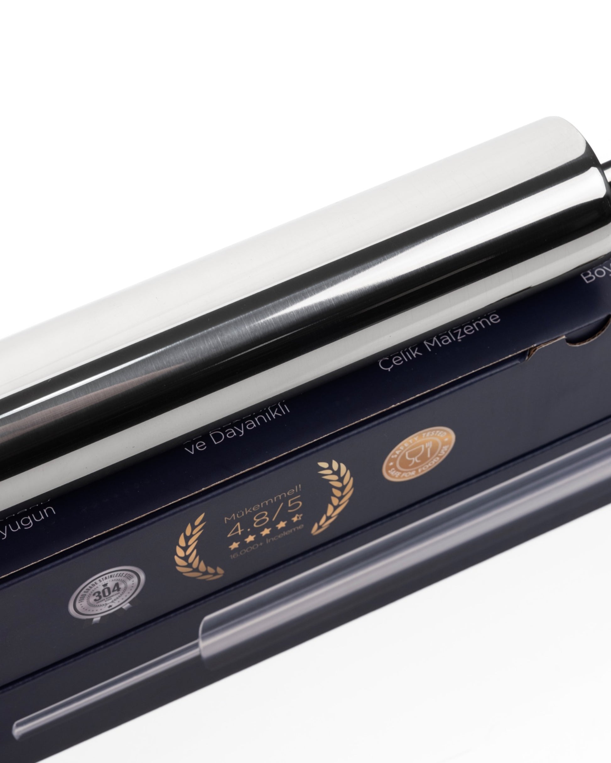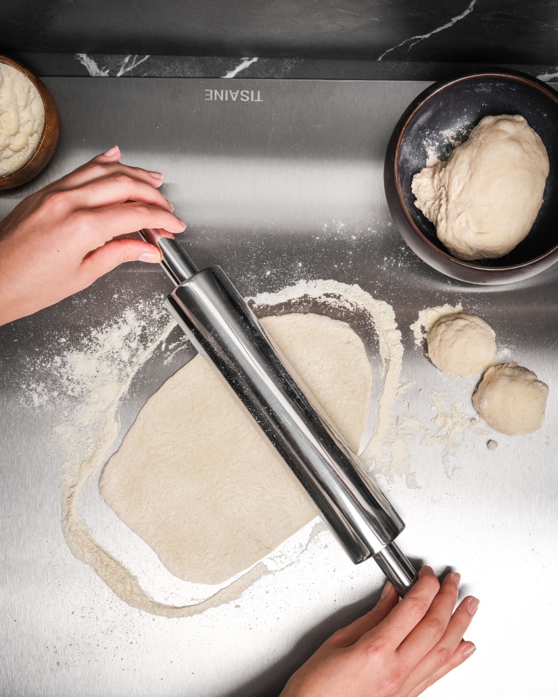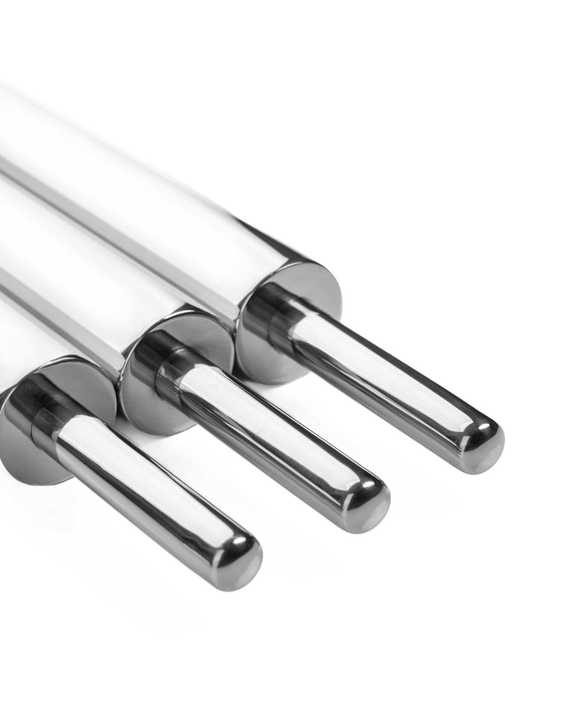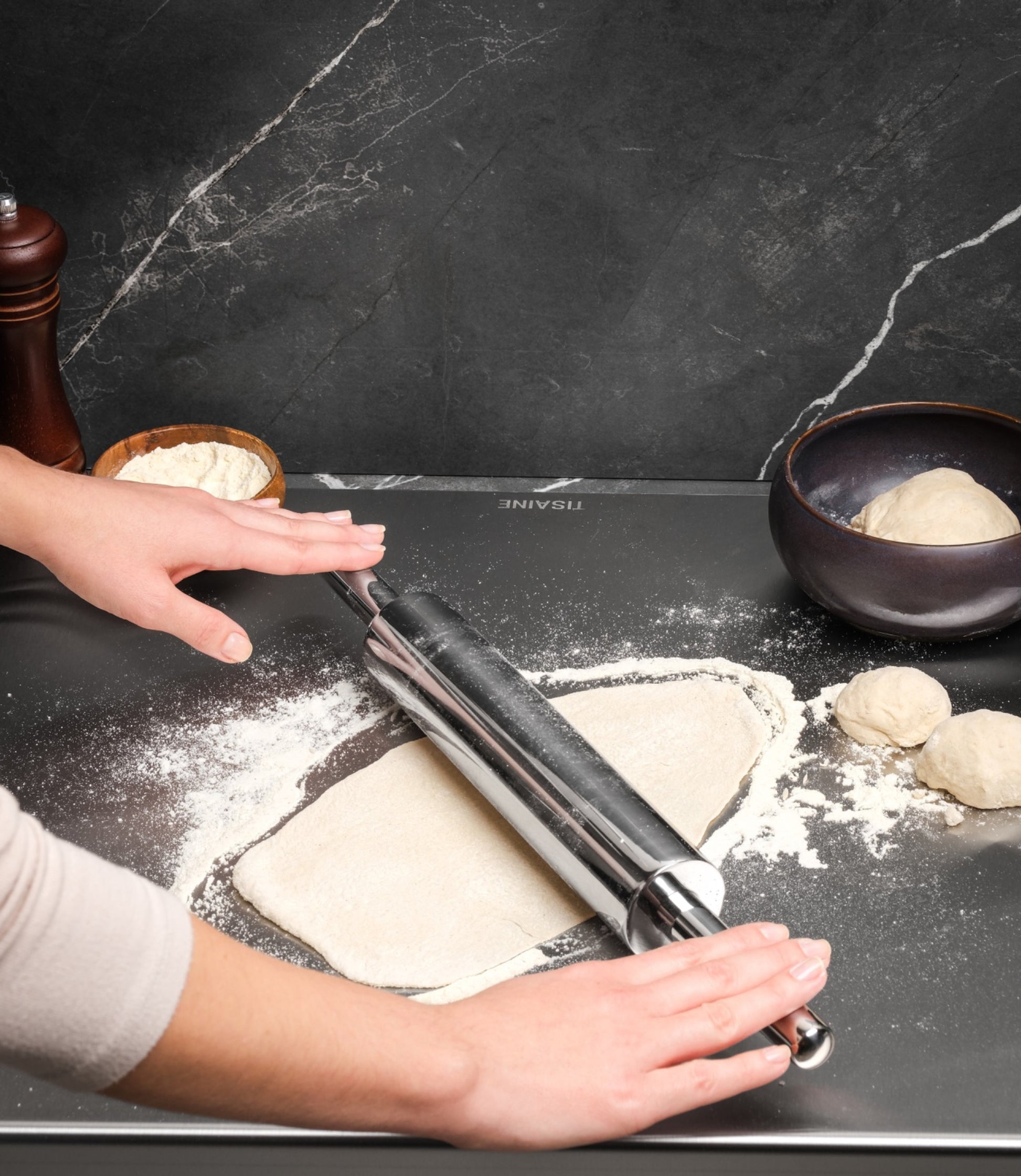 TISAINE™ paslanmaz çelik merdane, ideal çapı ve dengeli ağırlık dağılımıyla hamurun üzerine eşit baskı uygulayarak zahmetsiz bir açma deneyimi sunar.