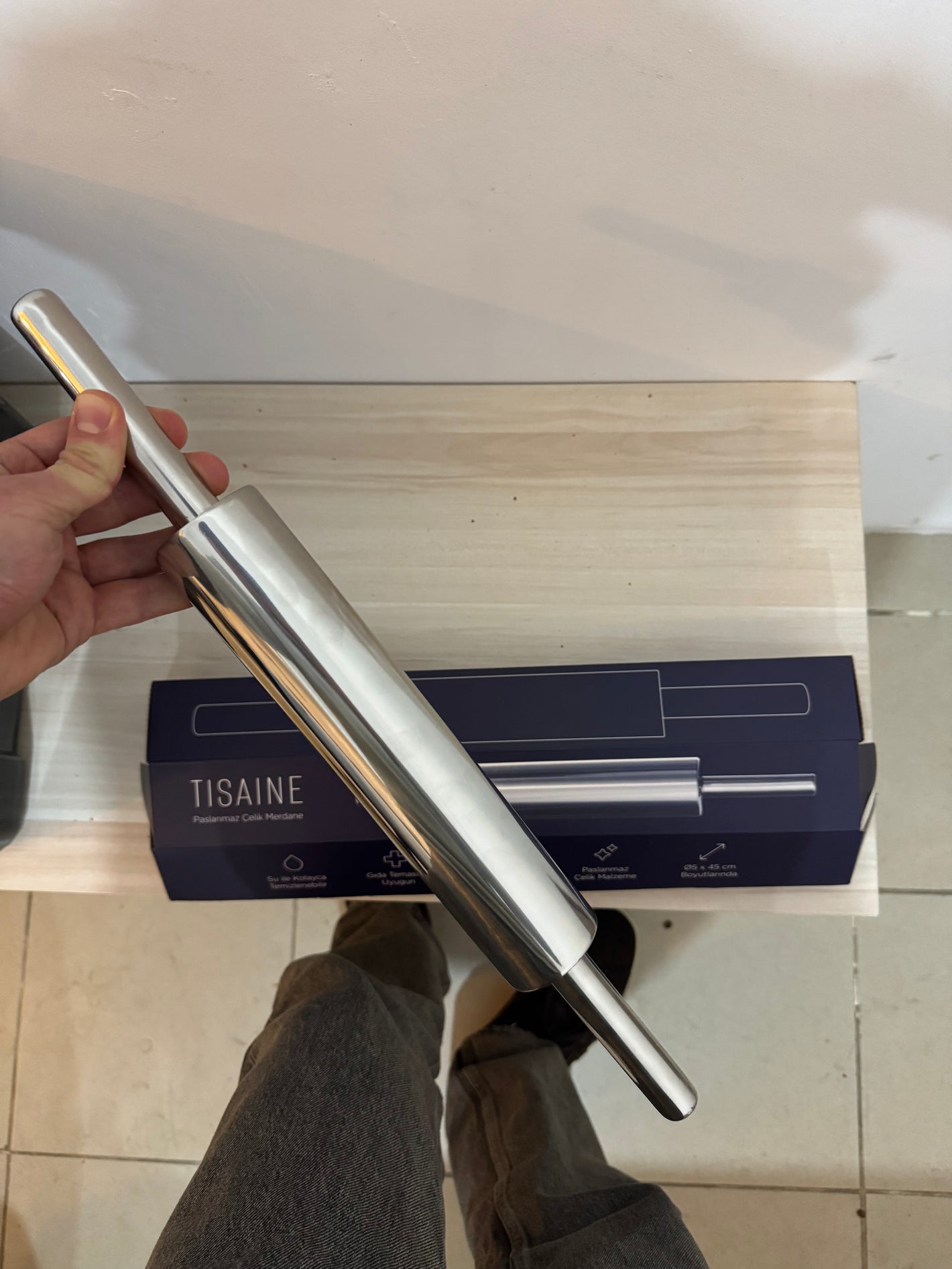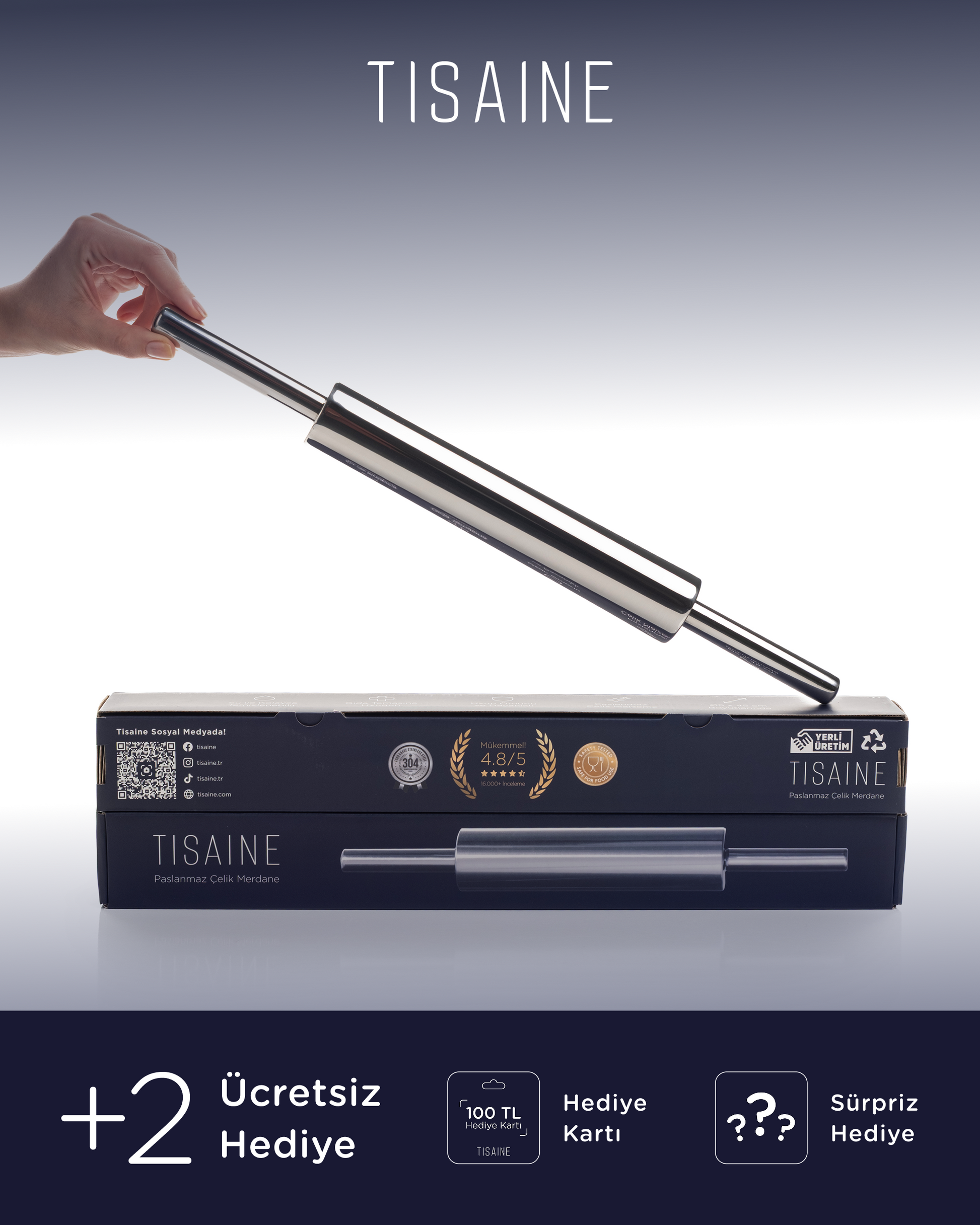 ✅ 1 Adet TISAINE Paslanmaz Çelik Merdane – Yüksek kaliteli, hijyenik ve uzun ömürlü.