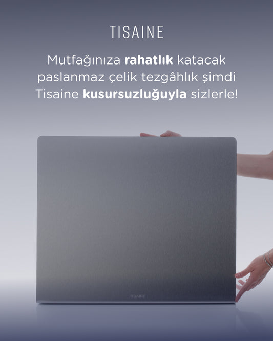 Kesme tahtamızın altında yer alan kaydırmaz silikon ayaklar, ürünün tezgaha yapışmasını önler ve zeminden bir miktar yukarıda durmasını sağlar. Bu sayede hem kaymaz hem de kaldırırken elinizi kolayca altına geçirip zahmetsizce tutabilirsiniz.TISAINE Tezgahlık da ise, özel bükümlü tasarımı sayesinde tezgâha tam oturur ve kayma yapmaz. Silikon altlığa ihtiyaç duymadan sabit duran bu yapı, kullanım sırasında güven verir. Ayrıca bükümlü kenarı sayesinde ürünü kavrayıp kaldırmak son derece kolay ve pratiktir.